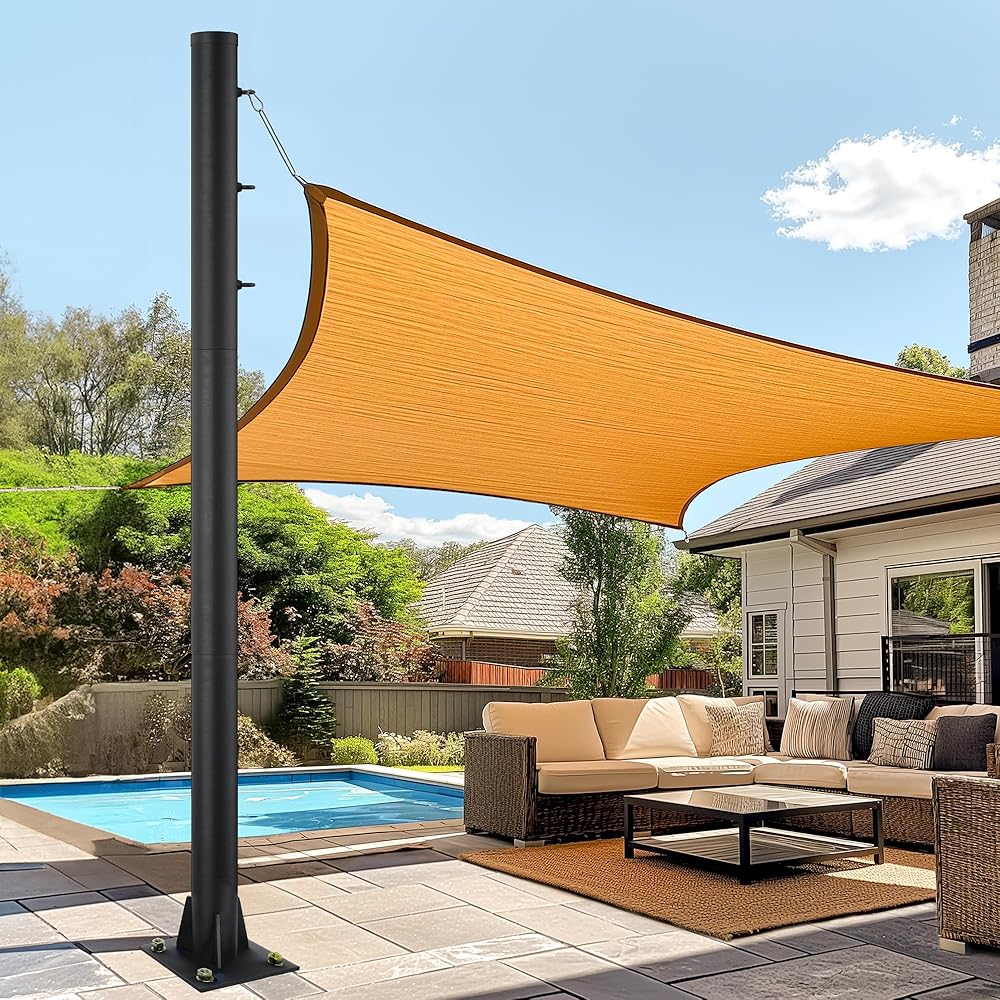 10 Feet Outdoor Sun Shade Poles, 3″ Diameter Steel Heavy Duty Shade Sail Poles for Patio & Deck & Playground & Backyard, Black Sail Shade Pole with 3 Rings