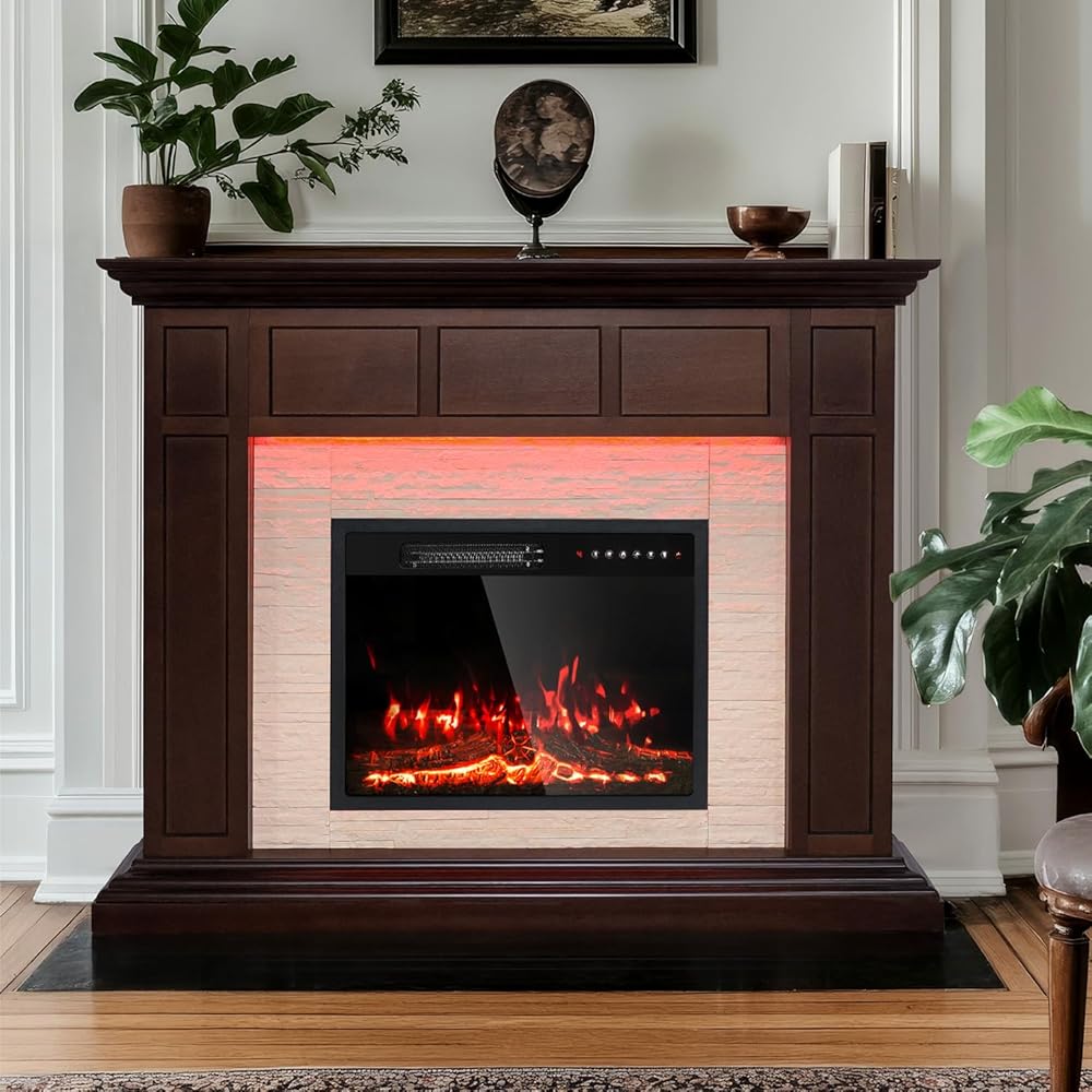 50’‘Electric Fireplace with Mantel, Fireplace TV Stand with 23’‘Electric Fireplace Heater, Remote Control, Adjustable Led 3D Realistic Flame, Corner Fireplace for Living Room, Bedroom, Coffee