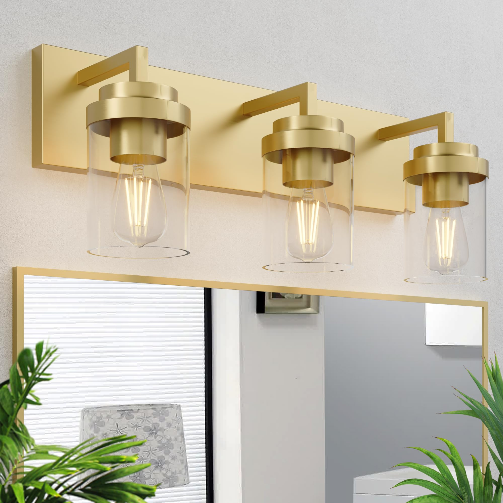Espird Bathroom Lighting Fixtures, 3-Light Bathroom Vanity Lights Over Mirror, Brass Vanity Light with Glass Shade, Modern Vanity Lighting Fixtures for Bedroom, Hallway