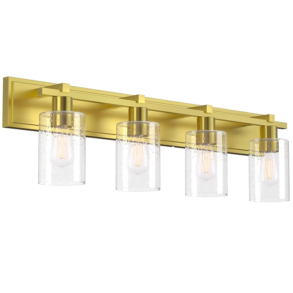 Espird Bathroom Vanity Light, 4 Light Gold Vanity Lights with Thickened Seeded Glass Shade, 24 inch Modern Light Fixtures, Over Mirror for Bathroom