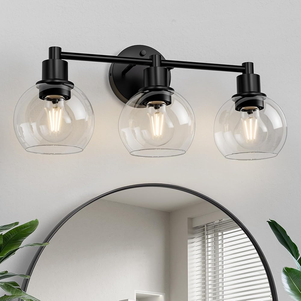 Espird 3 Lights Bathroom Vanity Light Fixtures Black, Bathroom Lights Over Mirror, Industrial and Farmhouse 3 Lights Wall Sconce, Matte Black Globe Vanity Lighting Fixtures