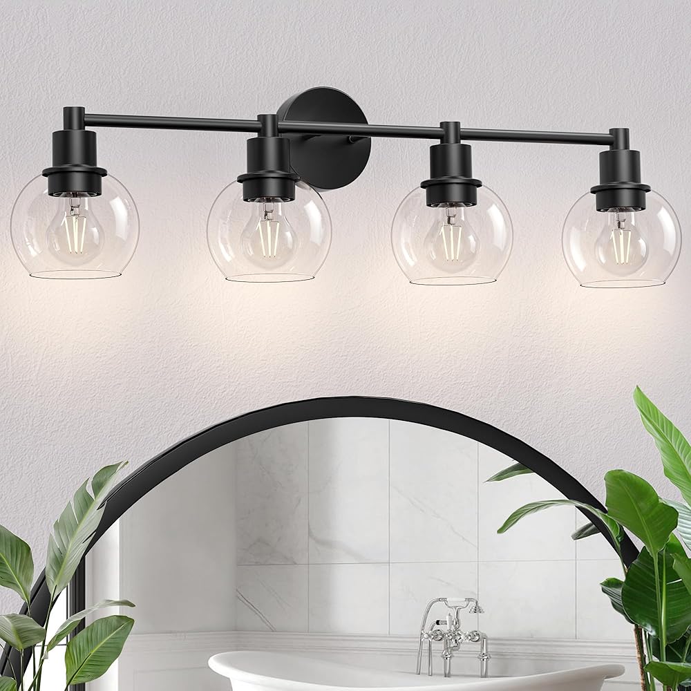 Espird 4 Lights Bathroom Vanity Light Fixtures Black, Bathroom Lights Over Mirror, Industrial and Farmhouse 4 Lights Wall Sconce, Matte Black Globe Vanity Lighting Fixtures