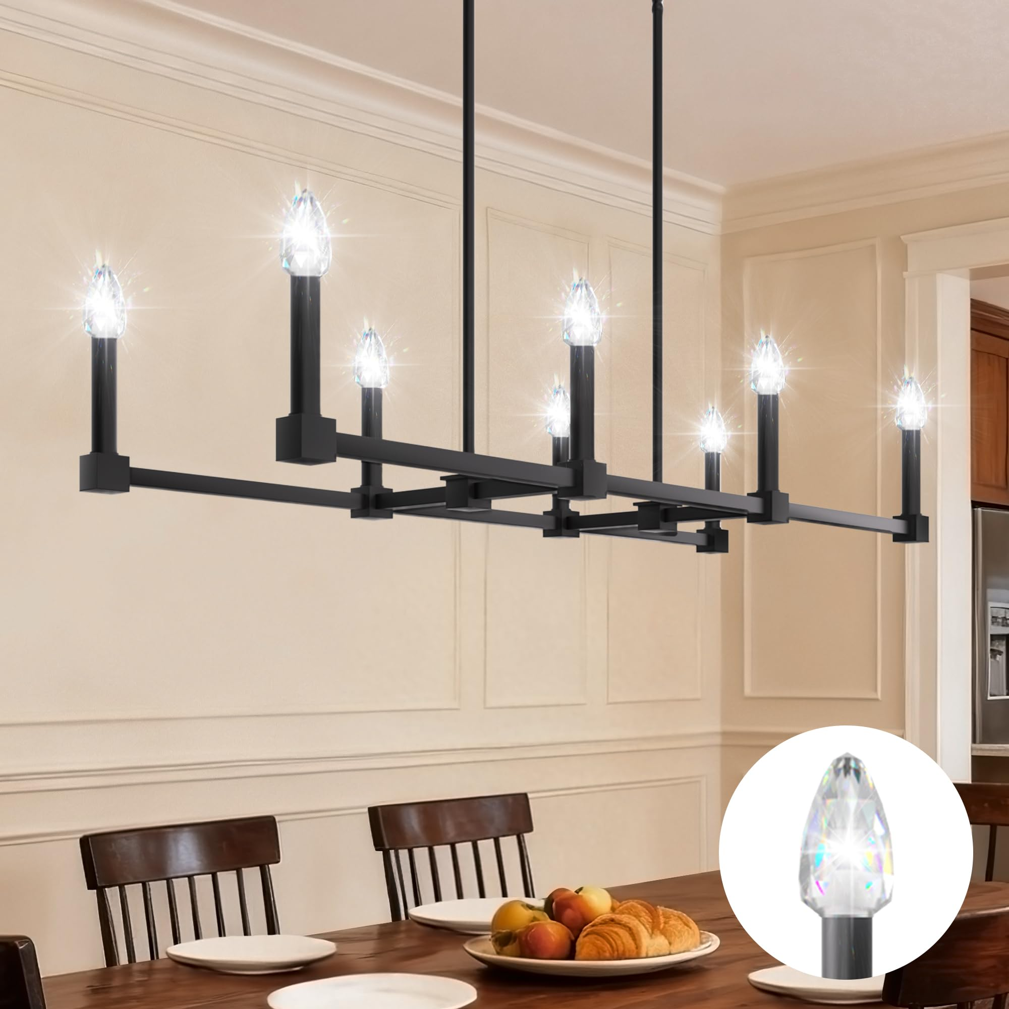 Black Crystal Chandeliers for Dining Room, 8-Light Dining Room Light Fixture Over Table with Adjustable Rods, Modern Farmhouse Chandelier for Bedroom, Foyer, Hall, Entryway, Living Room