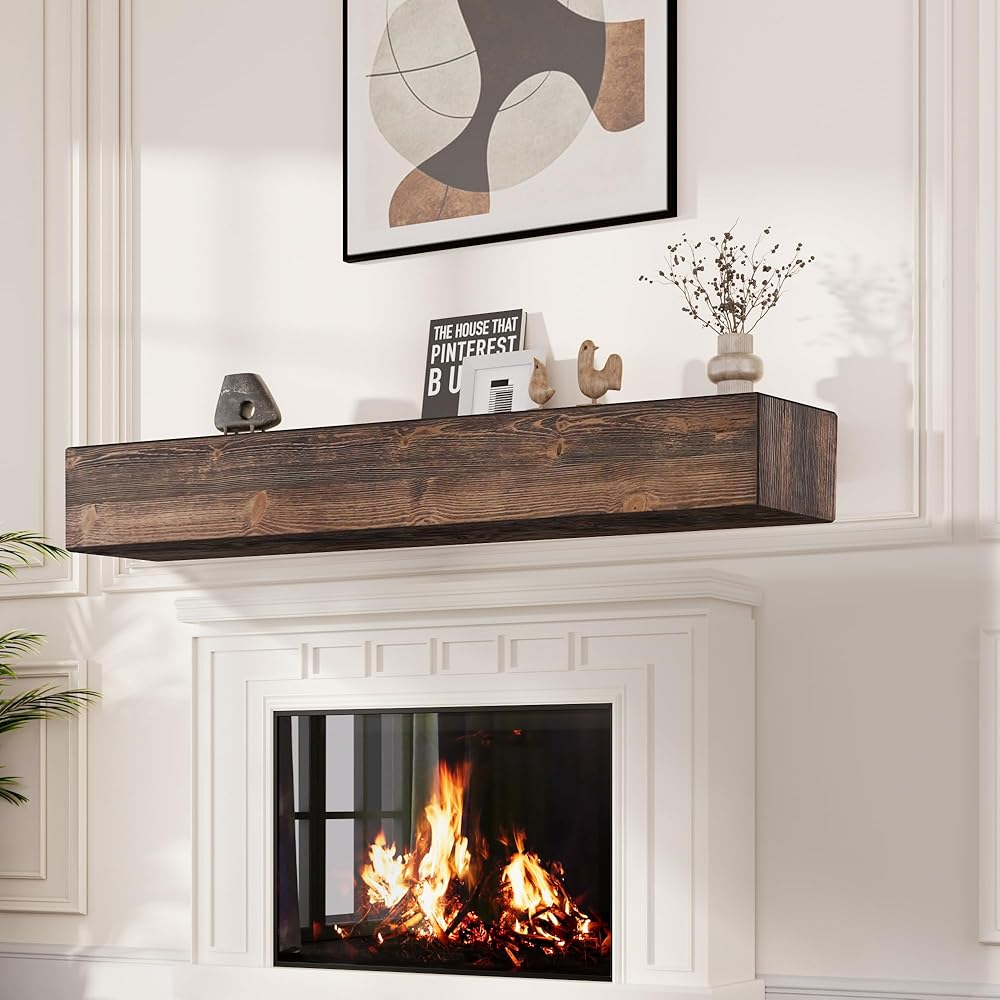 Eshoma Fireplace Mantel – Handcrafted Solid Mantel Shelf for Over Fireplace – Wall Mounted Floating Mantel Shelf with Invisible Brackets – 72 Inch – White