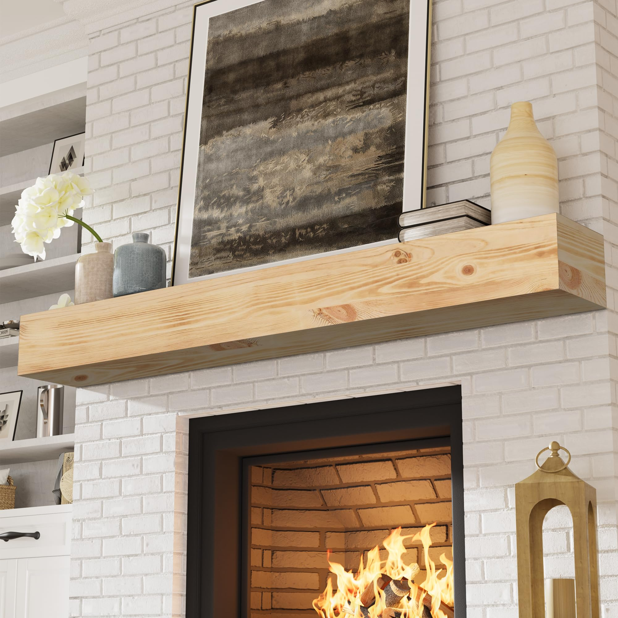 Fireplace Mantel – Handcrafted Wood Mantles for Over Fireplace – Wall Mounted Fireplace Mantel Shelf – Floating Fireplace Mantel for Living Room Decor – 72 Inch – Natural Wood