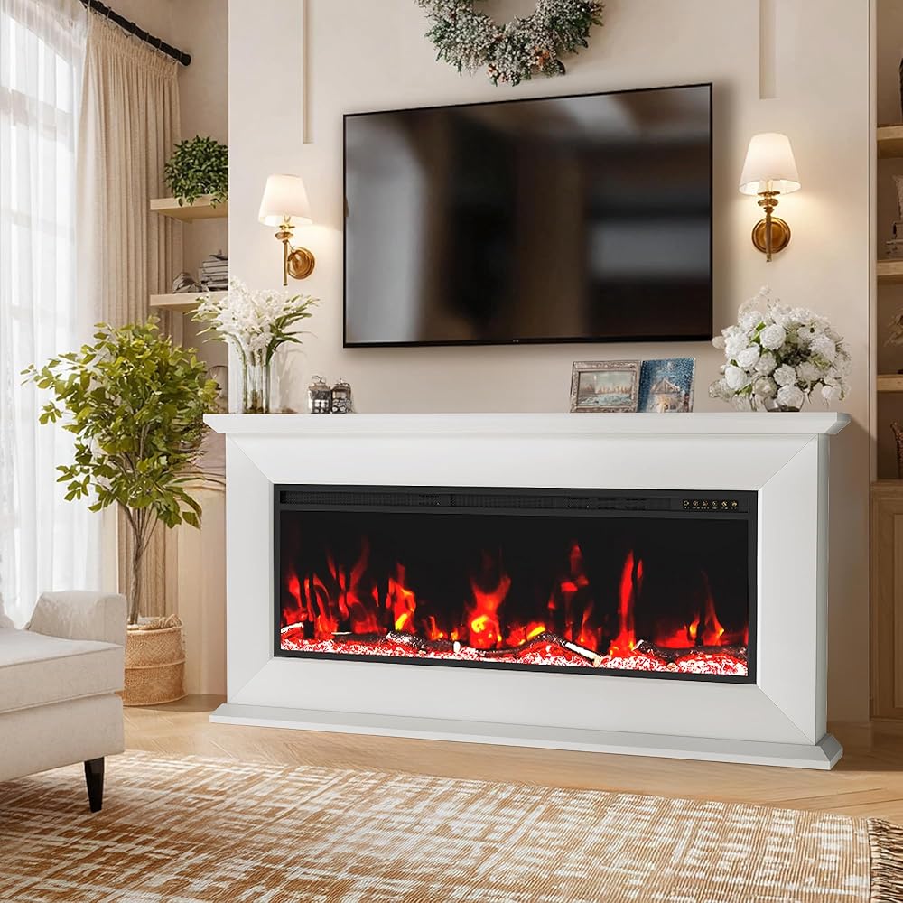Nexfurn 63 Inch Freestanding Electric Fireplaces, Replaceable 50‘’Fireplace Insert Heater with Multi-Colors, Fireplace TV Stand for Living Room Bedroom