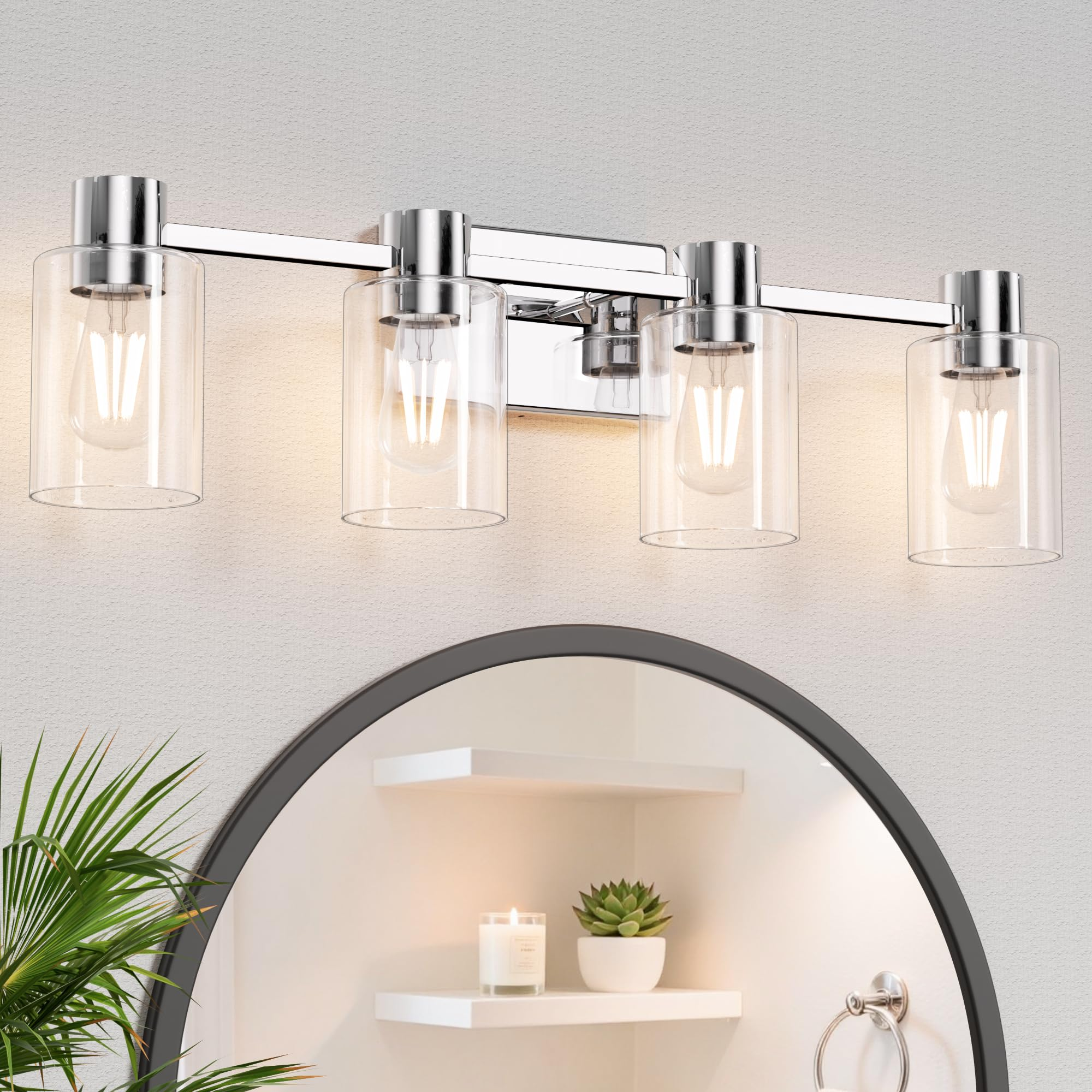 3-Light Matte Black Wall Sconces for Bathroom, Modern Vanity Light Fixtures Over Mirror, Bathroom Light Fixtures with Clear Glass Shade, E26 Wall Sconces for Living Room, Hallway
