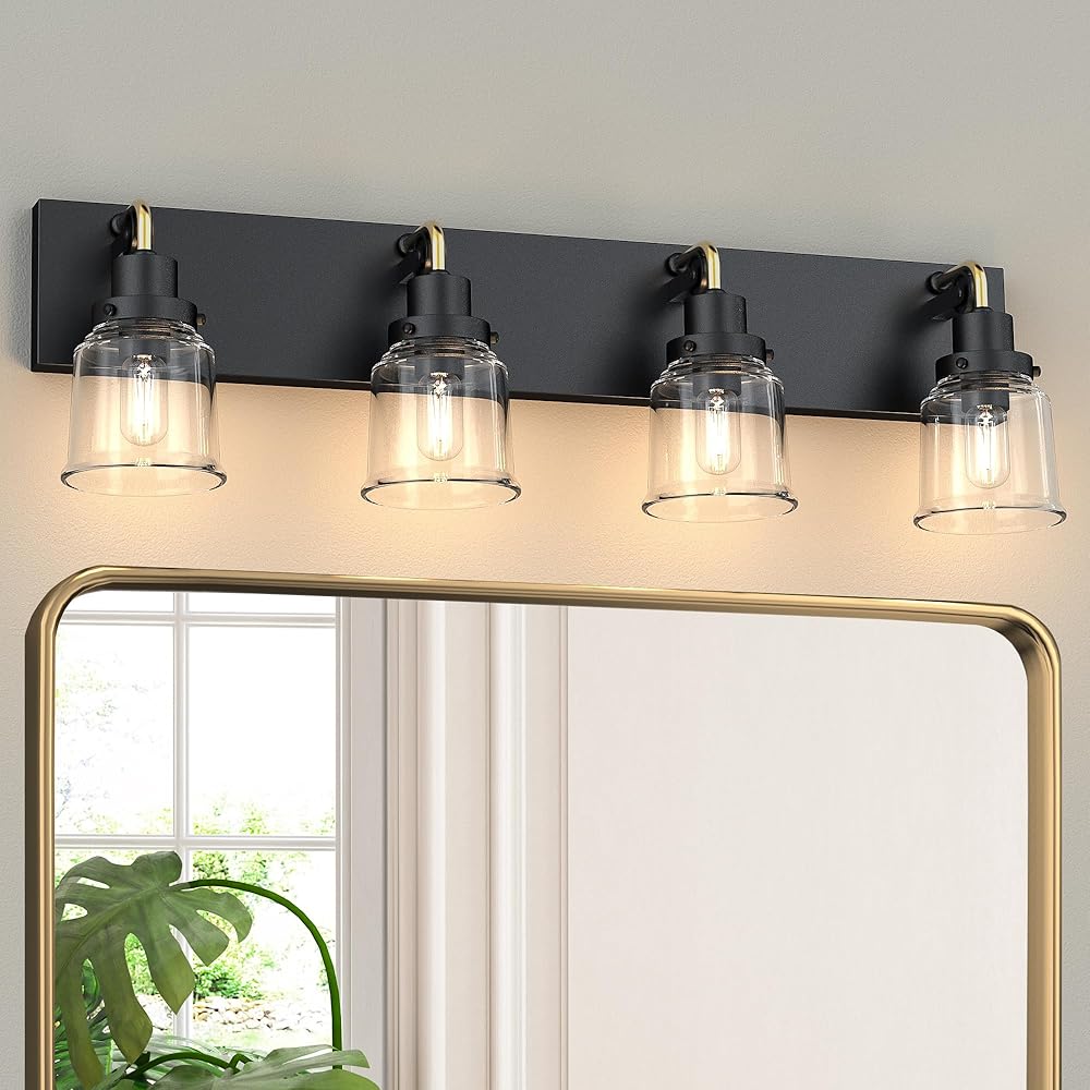 Espird Modern Bathroom Light Fixtures, 4 Light Industrial Bathroom Vanity Light,Matte Black Farmhouse Vanity Light for Living Room