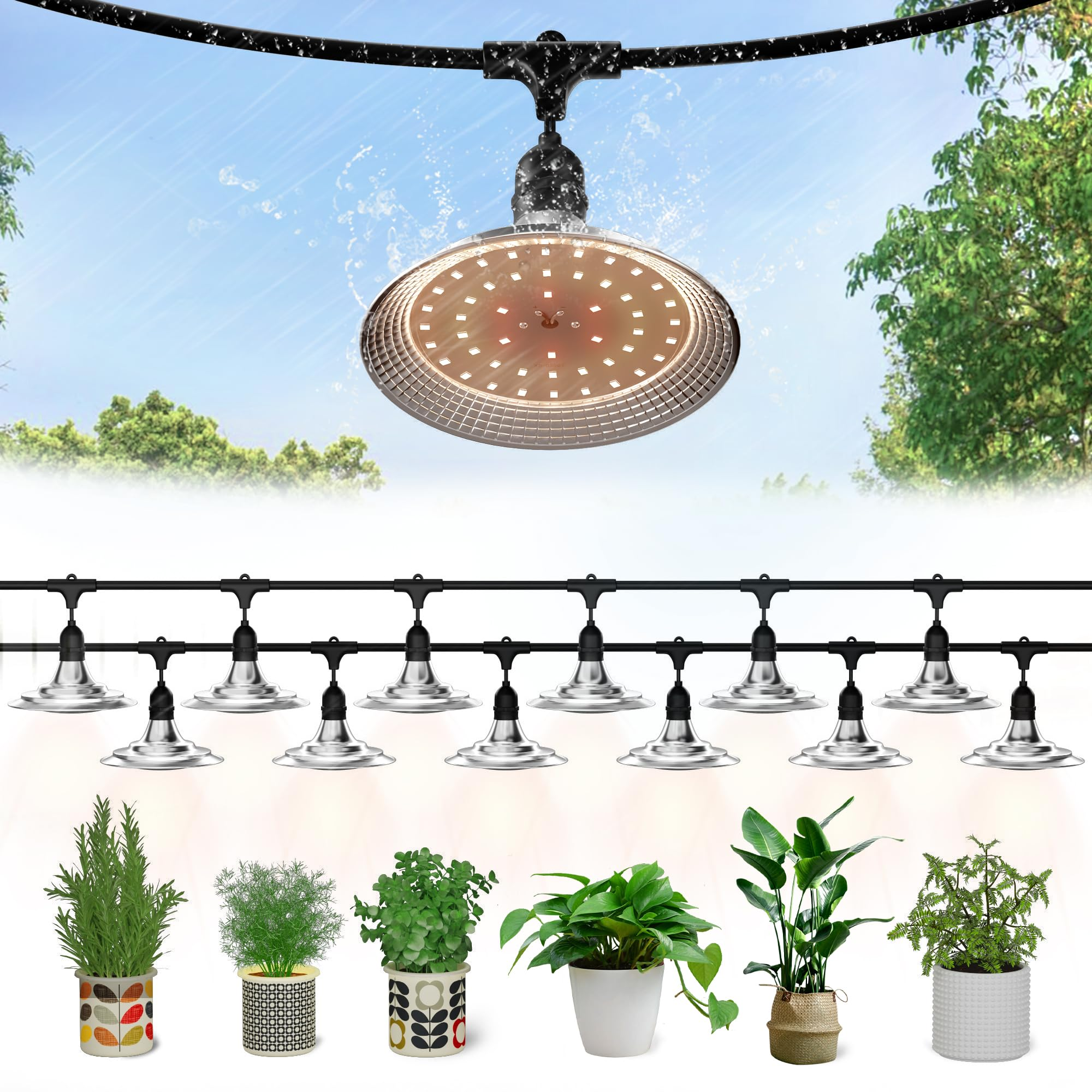 12-Light Outdoor LED Grow Lights ?C Waterproof Full Spectrum Greenhouse Lights for Plants, 41FT Adjustable String Lights with 576 LEDs, E26 Base Bulbs, IP44 Waterproof for Garden, Farm, Yard