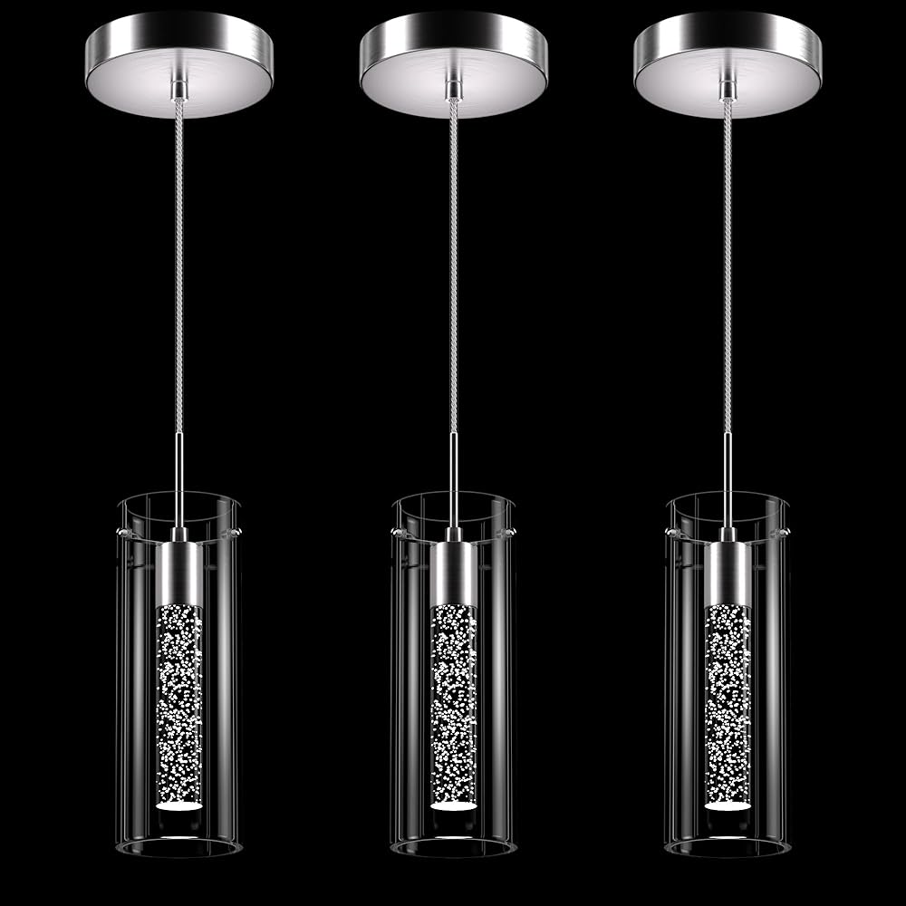 Esfos Pendant Ceiling Light Fixture, LED Kitchen Lighting Crystal Pendant Lights Kitchen Island, 1-Light Integrated Kitchen Hanging Light Fixture Modern Island Light with Bubble Glass Three Pack